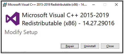 - If Repair doesn't correct error, Run the file VC_redist.x86 to Uninstall