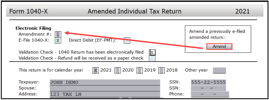 1. Open the appropriate tax return and print a copy of the previous amendment for your records.
