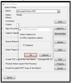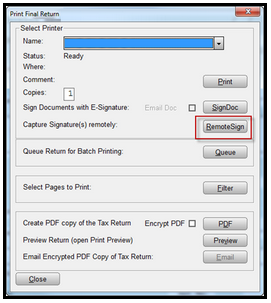 - From the Print Final Return window, click on the RemoteSign Button.