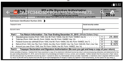 - A Text message or Email with a web link will be sent to Taxpayer/Spouse cellphone or email.