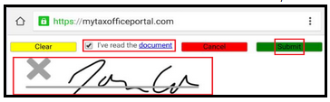 - After the verification, the Taxpayer/Spouse will place a check mark on "I've read the document," place the signature and submit.