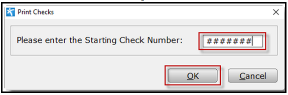 6. In the "Print Checks" window, enter the Starting Check Number, then click OK.