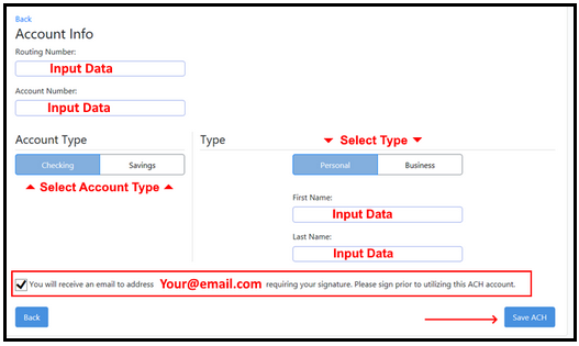 Note: When utilizing the ACH option, you will need to manually reload funds to cover charges.