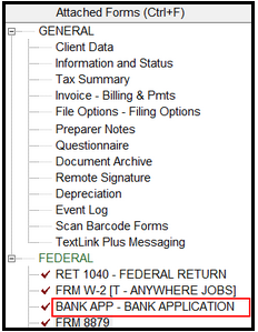 - A Bank Application should now be visibly appended to the return.