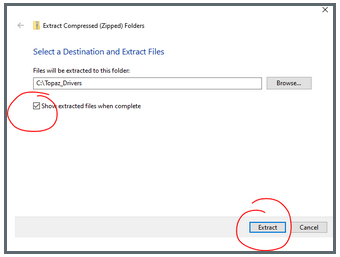 - Click Extract all files, check the Show extracted files when complete checkbox, and then click Extract. A window will pop up showing the extracted files once complete.