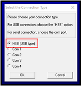- If your Topaz Signature Pad connects to your computer via a USB connection, select HSB (USB type).