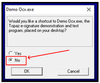 - When the Demo.ocx or Adobe.ocx screen appears, click NO and then click OK.