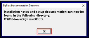 - When the SigPlus Documentation Directory dialog appears, click OK.