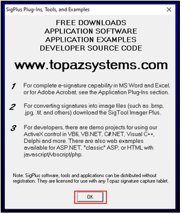 - When the ~Sigplus Plug-Ins, Tools, and Examples dialog appears, click OK.