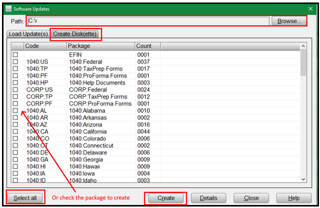 - In the Software Updates window, click the Create Disk(ette) Tab.